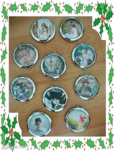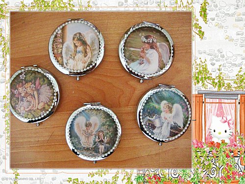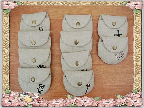 老爺的巧妝鏡訂單 分類:handmade 布作 2011/04/25 09:41 分享 FacebookPlurkYAHOO! 上星期完成格子兔萬用包後 老爺下了10個巧妝鏡和巧巧袋的訂單 成品要送給球隊上的女球友 所以Q媽選擇轉印的圖案偏向成熟 天使和可愛小女孩 希望收到禮物的老板娘喜歡 因為是轉印布 縫的過程不如純綿布的好縫 Q媽的左邊中指留下了硬縫的足跡 後來又去敗了一個保護套(頂針套) 巧巧袋以棉麻布製作 在角落燙上不同的燙畫 雖然素素的 但這才是Q媽一直以來的風格