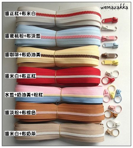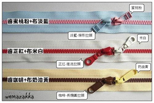5V百碼塑鋼拉鍊-雙色(每條3碼)1條145元(同款5條690元):齒#蜜桃粉+布#淡藍/齒#咖啡+布#奶油黃/齒#正紅+布#米白