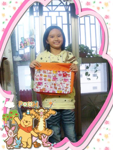 Jenny選擇了1680D亮橘色防水布+懶懶熊的布款
