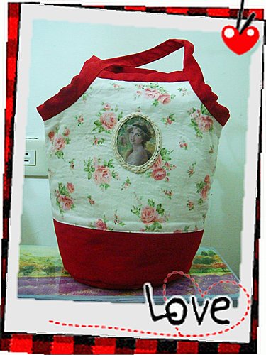 一面是玫瑰布~加上轉印的古典仕女及蕾絲~