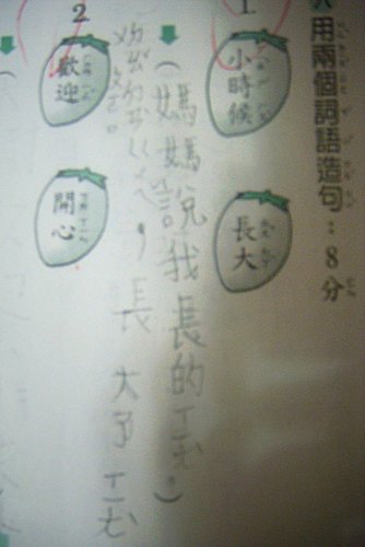 Q媽:你看她的造句,我開玩笑的講答案,結果小傢伙照寫,還寫錯超多的。