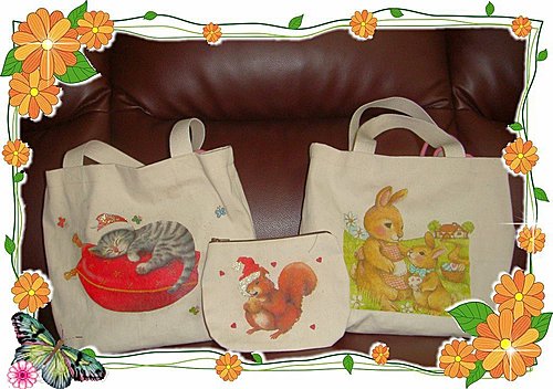 中間的松鼠拉鏈袋 是我作肩背包時多餘的部份,大小剛好可以當化妝包