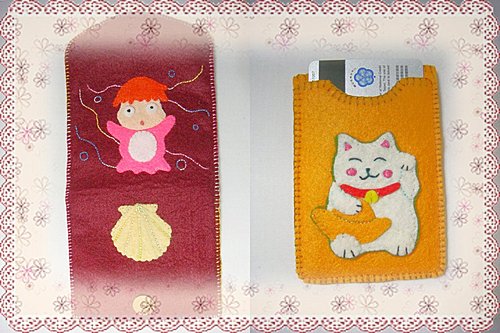 下面就是我自己的不織布波妞包包和老爺的招財貓信用卡套喔