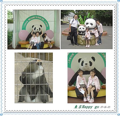 9點30分,搭乘飯店的車準時出發。在新宿京車站下車後,就直接往地下接去,沿路都有中文字指示根本不會迷路,但新宿是大型車站有很多出入口,要牢記方向呦!到了地下街,我們才發現,原來地面上的人這麼少,因為都在地下室嘛。搭乘JR山首現環繞東京一周只要1小時,新宿到上野約24分鐘。眼前就出現了口愛的售票機,先研究別人怎麼用,才知道真的粉容易操作ㄋㄟ(有點像捷運的買法),小小儀未滿6歲所以不需要買票,大人190,小人90。到了上野,我們和另一隊兵分兩路。他們打算先買藥妝,後轉新宿再戰第二回。我們為了小朋友,所以決定先滿足小人,在滿足大人啦。 出上野公園口後,就可以看見上野公園及阿美橫町的指標。左轉約走5分鐘就到了阿美橫町。 上野動物園,就在上野公園內,這裡的人氣動物就是玲玲(貓熊)。真是一隻大懶豬,看了許久也不見她動一下手腳,我們只好先參觀其他動物。動物園清潔無臭味,大概只有愛乾淨的日本才做得到吧。我們都發現鳥籠、大象區裡,都有人在清理糞便,真讓人佩服,也很惋惜我們的木柵怎麼差那麼多臭。又去看北極熊,身上的毛,原來是黃色的ㄚ,比起貓熊玲玲,他們兩盡責多了,一會ㄦ跳下水,一會ㄦ走台步,逗的佩和疑都說:北極熊好可愛喔。我們為了趕時間,所以沒有逛完整個園區,下次一定還要去看看。離園時,不死心的拔鼻,帶佩和儀再探玲玲,還是那副睡死的樣子。 一天到晚,動沒幾下的熊貓 真的熊貓只會睡,只好拍拍假的囉 一進阿美橫町,沒多久就看到網友說的O.S店,O.S的店面約6 7坪 (目測的),可擺放的東西就有數百種以上,媽咪拿出影印預購的東西圖片,大肆採購去囉。找不到的藥粧就問老闆,這種5罐、那種8瓶,一下子就滿滿一籃子了,花了4萬多(日幣),此時總財產只剩不到2萬,還有ㄧ堆沒買到的...飲恨ㄚ應該多帶些錢的...... 依依不捨離開藥妝店後,就直接找尋二木菓子店。從街頭走到街尾,只發現二木高爾夫球店,就是沒有二木菓子,問了店員才知道,原來藏身於小巷子中。買了一堆伴手禮(其實多數都在我們家的肚子裡),尤其是巧克力,又是一大袋,花了約7000。走出店外,發現日本櫻桃又花了1000。買了3隻網路上推薦的抹茶冰淇淋,就這樣邊走邊吃,粉香ㄋㄟ可是好脹ㄛ,下次還是買2隻冰淇淋就好。吃完冰淇淋後又去吃拉麵,鹹死人了倒了一大杯冰開水,還是沖淡不了!! 後來就在公園中享用剛買的櫻桃,酸,還是逼佩和儀至少吃5顆,(媽咪在台灣常用的招數,到日本繼續沿用)。還遇到一名流浪漢,佩和儀快嚇死了,拔鼻就更緊張了,連忙說:趕快走吧!(換位置的意思)。 吃完櫻桃後便搭JR山手線回新宿。我告訴拔鼻:時間還早(下午1點多),可以環東京一周(64分鐘),他又拒絕了。他說:回新宿,慢慢逛不是更好!又被潑冷水了...。就這樣到新宿約2點閒晃後又買了些牛奶及沙拉、可樂餅等炸物,(因為晚上8點的飛機,所以準備依些食物) 身上餘額約8000日幣。在新宿候車時,有ㄧ個年輕辣妹背著相機,纇似要幫女兒照相,我婉拒了!因為人生地不熟,日語又不通,如果照像又要收費豈不是很......。當然,穿那麼可愛的佩和儀,也被日本人誇過,不管是真的看他們姐妹可愛,還是另有企圖,總之出門在外,還是要有所防備。 到飯店才3點而已,又白白浪費30分鐘(早知道就環東京一周)。3點50分,車子準時離開飯店,往機場開去。免稅店幫朋友買香菸和巧克力... 餘額1000日幣。 後記:日本的可樂餅好吃、炸魷魚冷了,味道和口感也沒變喔 藥粧及伴手,請參考東京購購購喔