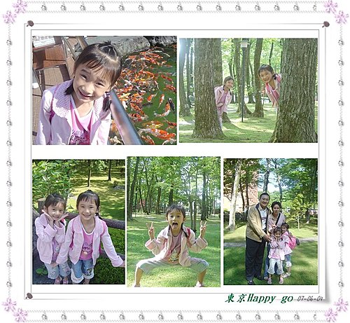 明治神宮--祭祀明治天皇(日本最聰明的天皇)與昭憲皇太后的神社,境內種植由全國各地捐贈而來的17萬棵樹木,每年來此參拜的民眾絡繹不絕,神社的柱子就有5 K過的痕跡喔。神社就由佩和儀去拜囉,祈求一下聰明才智嘛。在這裡,有ㄧ對夫妻樹,聽說夫妻只要在此拜拜就能長長久久,不免俗的又拜了。