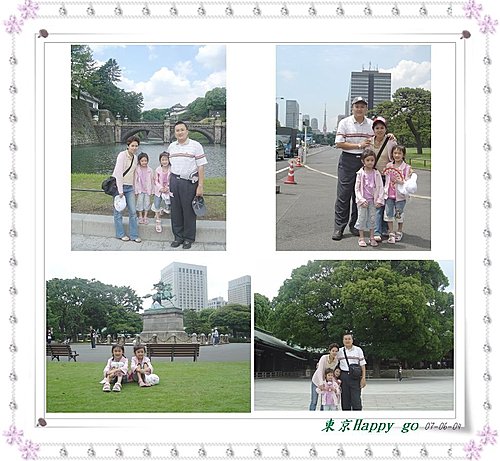 皇居是日本皇族的居住地。1888年建成的皇居,在第二次世界大戰期間,在砲火的空壟下而遭到破壞,現在的皇居建于1968年。只能在外圍照照相,別闖禁地會上新聞喔。我們沿原路走回車上時,老公看到團員們吃鮮奶冰淇淋直嚷著要吃,我說:台場可能有抹茶的呦!佩和儀便說:我要吃,3票對1票,老公輸了上車後還在碎碎念......粉像小孩子ㄋㄟ。