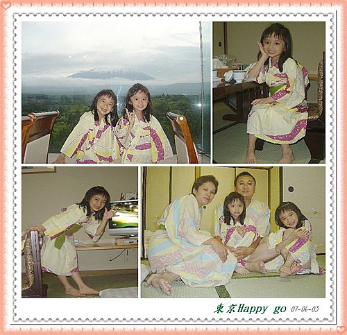 泡完舒服的湯後肚子也餓的咕咕叫,6點20分準時開飯。今天吃的是和牛、帝王蟹吃到飽,吃飯的地方可以看到完整的富士山喔!!水啦。帝王蟹細冷的要吃熱的請自己烤,吃三根就半飽了。和牛沒有調味,熱食還不錯冷了就嗯.....。吃完飯後就直接去三樓買東西,蘋果一顆180好吃草莓一盒500,大顆跟台灣的味道不太一樣(個人喜歡台灣的酸甜感覺),又買了清酒和一些雜七雜八的東西。今天ㄚ獎特別排了一間4人睡的大通舖給我們(價錢是否較便宜姑且不談,但位居9樓視野一級棒),4人就在房間中嗑蘋果、吃草莓,拍照囉!還有多爾滾滾。累了!睡前和老公用清酒乾杯吧。